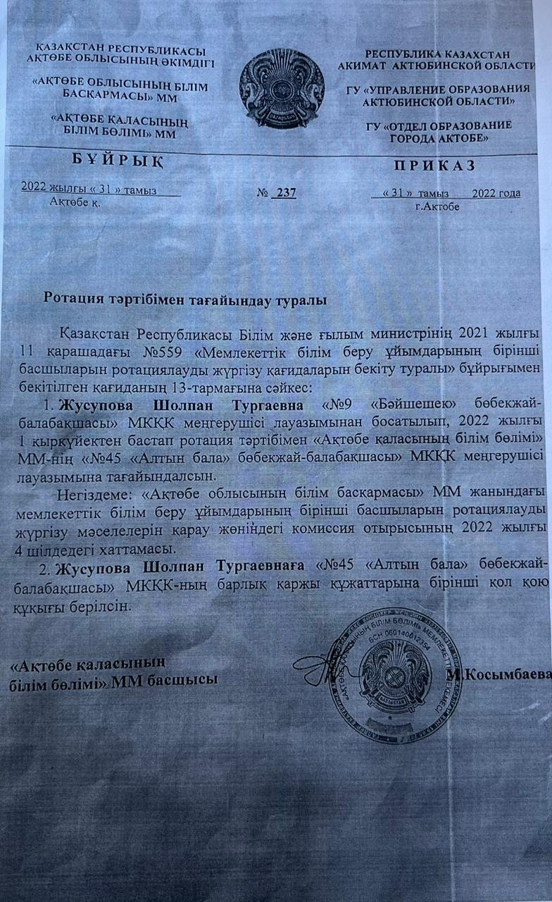| 4 | Өзін-өзі аттестаттау бұйрығы | |
